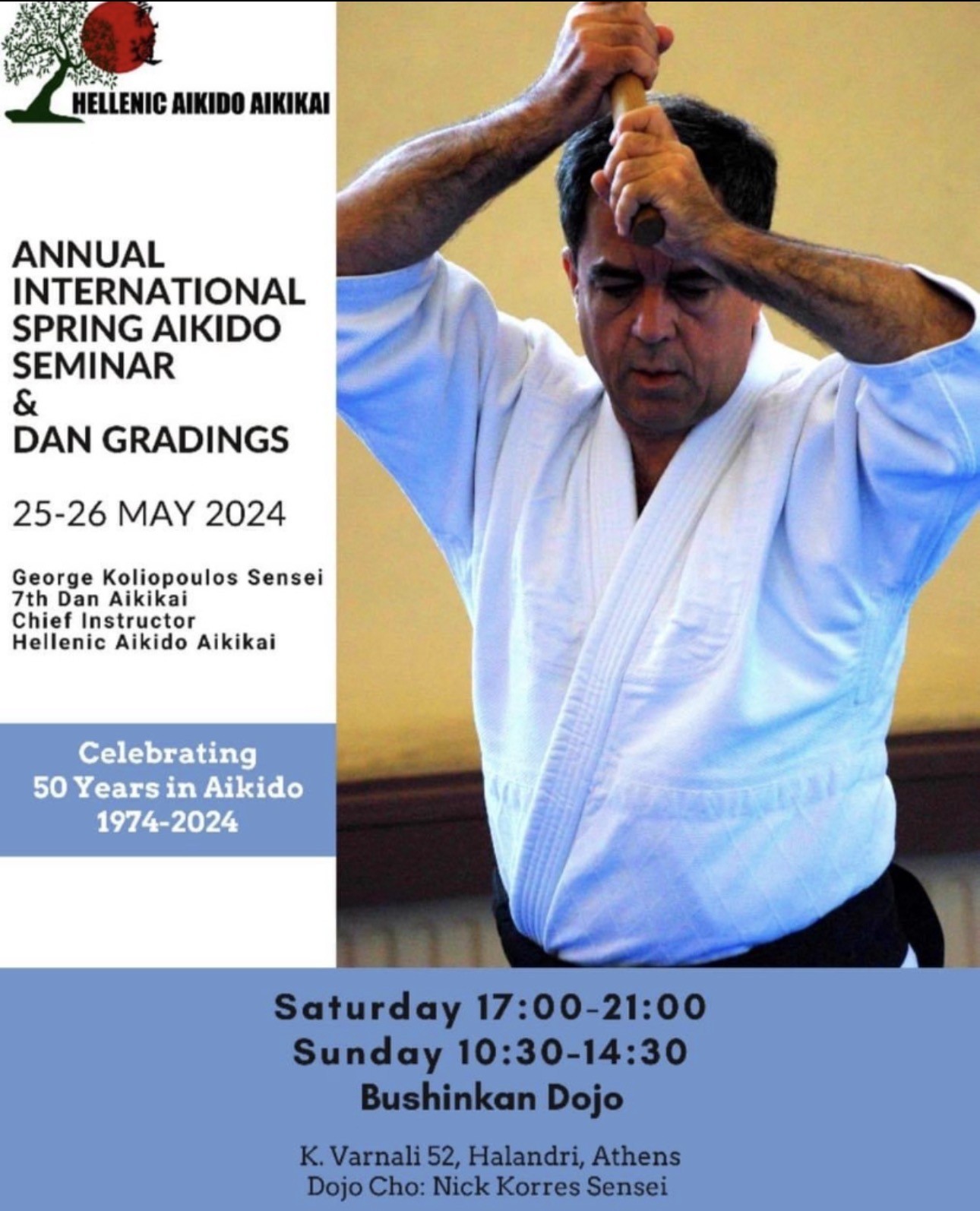 Στα πλαίσια του σεμιναρίου γιορτάσαμε τα πενήντα χρόνια ενασχόλησης του αρχηγού της οργάνωσης μαςΓεωργίου Κολιόπουλου Σενσεϊ, με το Αϊκιντο.